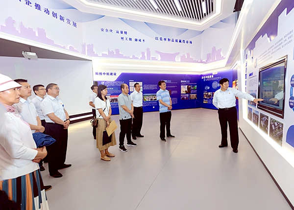 于新华副处长一行首先到集团公司展厅参观,对中航建设集团发展历程、产业项目概况、未来发展规划以及党建工作进行全面了解。